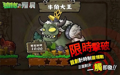该模式只能双人联机进行,一方扮演植物,一方扮演僵尸,看谁先推倒谁。不过限于条件并没办法仔细测试。